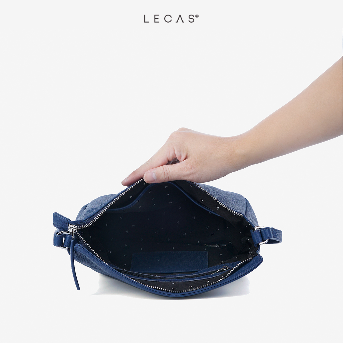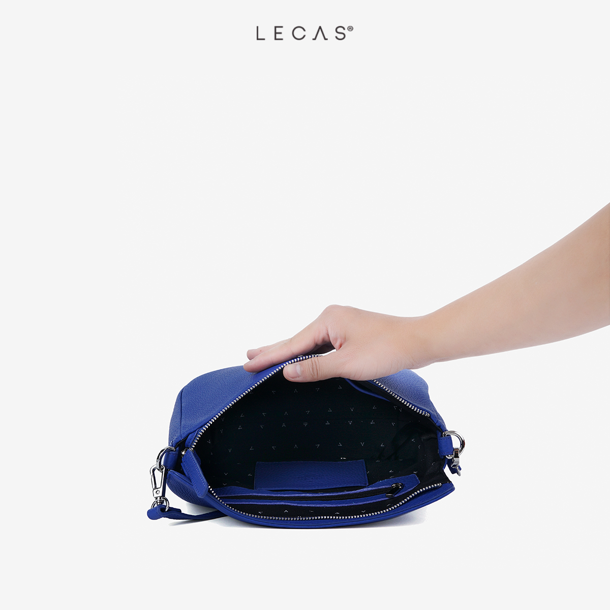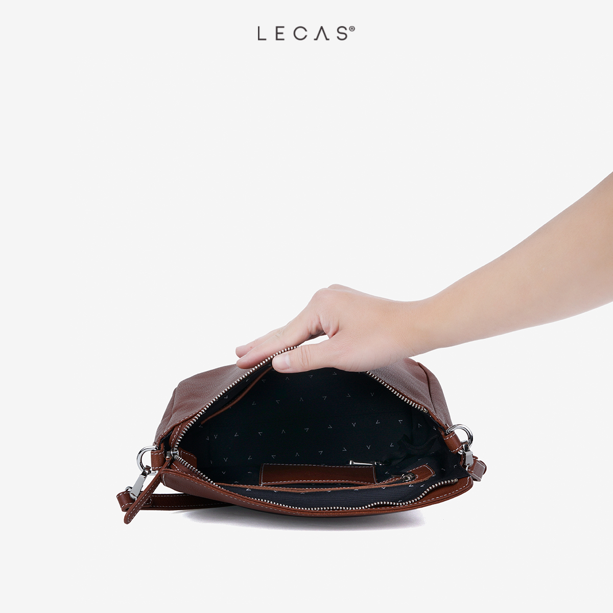 Nội thất: Túi có 1 ngăn chính và các ngăn nhỏ bên trong gồm: 01 ngăn zip, 01 ngăn thẻ ATM và 01 ngăn để điện thoại chống xước. Đồng thời túi có 01 ngăn phụ dùng khóa kéo ở phía sau