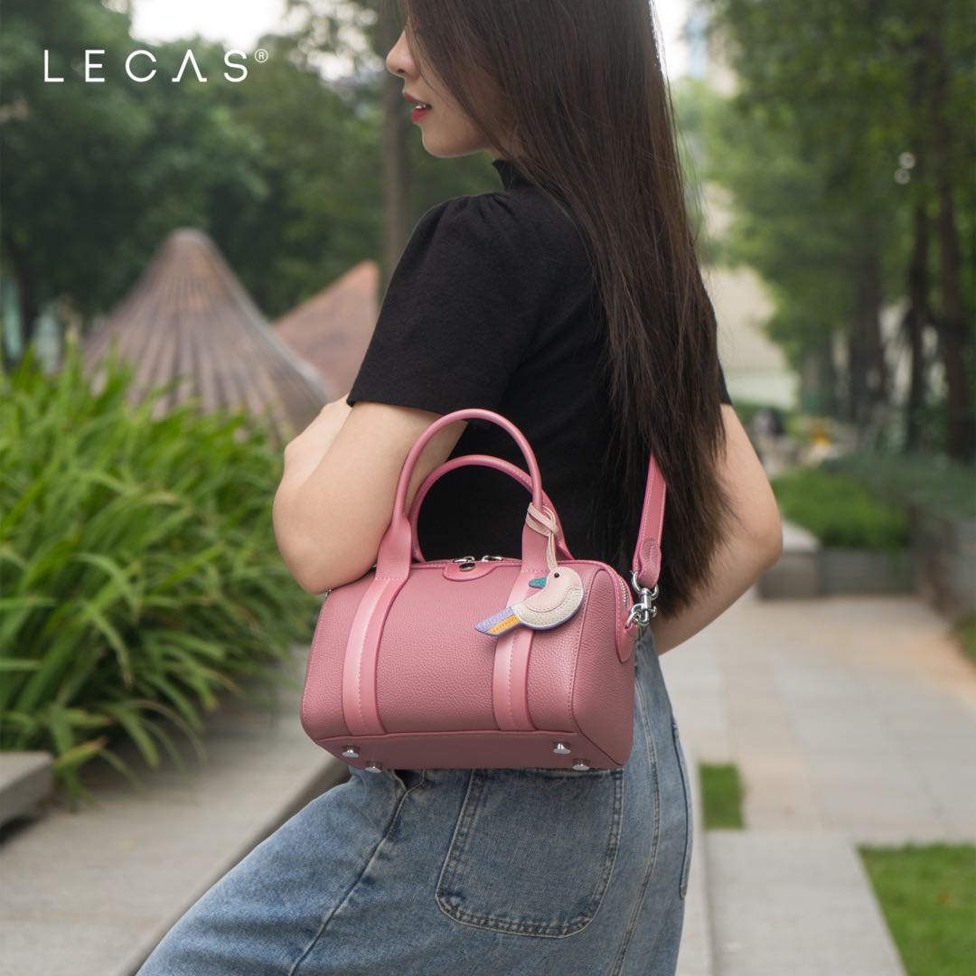 Phần đáy túi tuy vẫn giữ nguyên hình dáng chữ nhật nhưng đã được thợ da thu gọn lại và có phần cứng cáp hơn để giữ phom cho túi bền lâu. Với lần trở lại này, thợ da đã mạnh tay tặng cho Merci chiếc móc đinh nấm có in Logo ở quai đeo chéo. Một phụ kiện quen thuộc đang có mặt trên nhiều mẫu túi LECAS®, mang lại trải nghiệm sử dụng thích thú nhờ kích thước lớn dễ sử dụng và vẻ đẹp tinh tế của hình khắc Logo LECAS rõ nét.