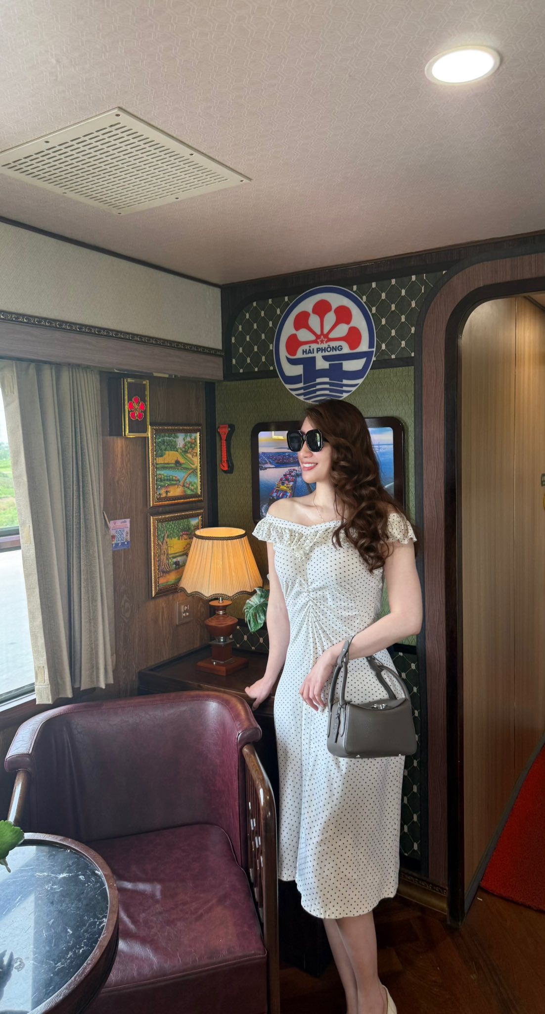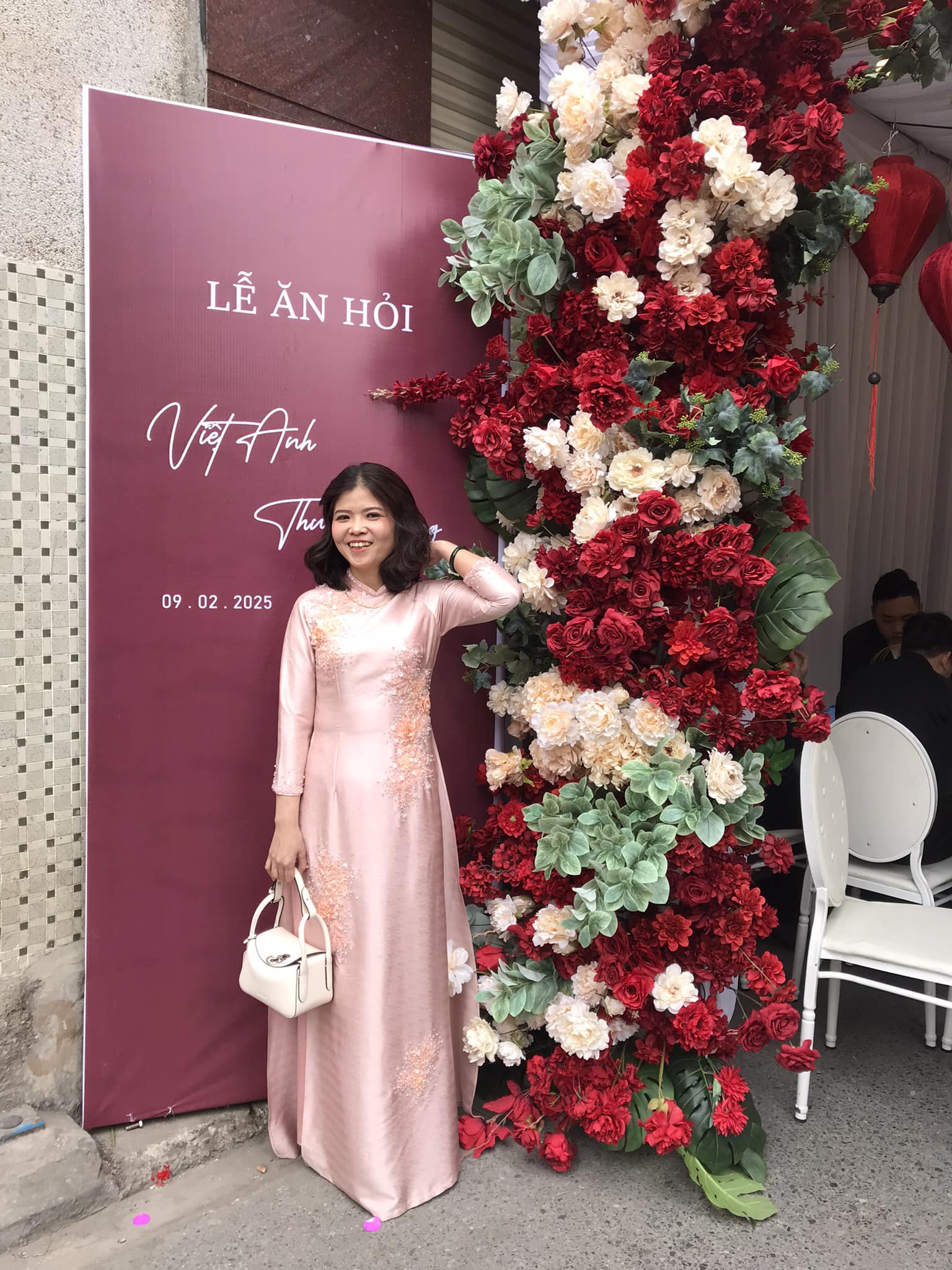 Túi THU ÚT trắng kem mang vẻ nhẹ nhàng, duyên dáng khi kết hợp cùng tà áo dài Việt Nam