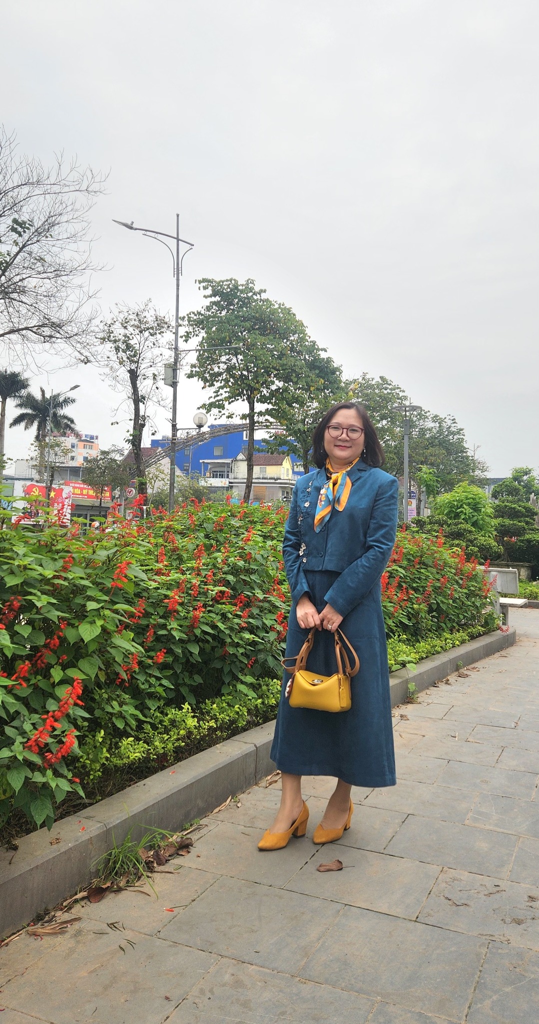 Túi THU ÚT vàng được kết hợp khéo léo ton-sur-ton cùng phụ kiện đồng màu làm hài hoà tổng thể bộ trang phục